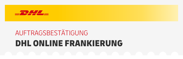 vielen Dank für die Nutzung der DHL Online Frankierung. Hiermit bestätigen wir Ihnen den untenstehenden Auftrag.